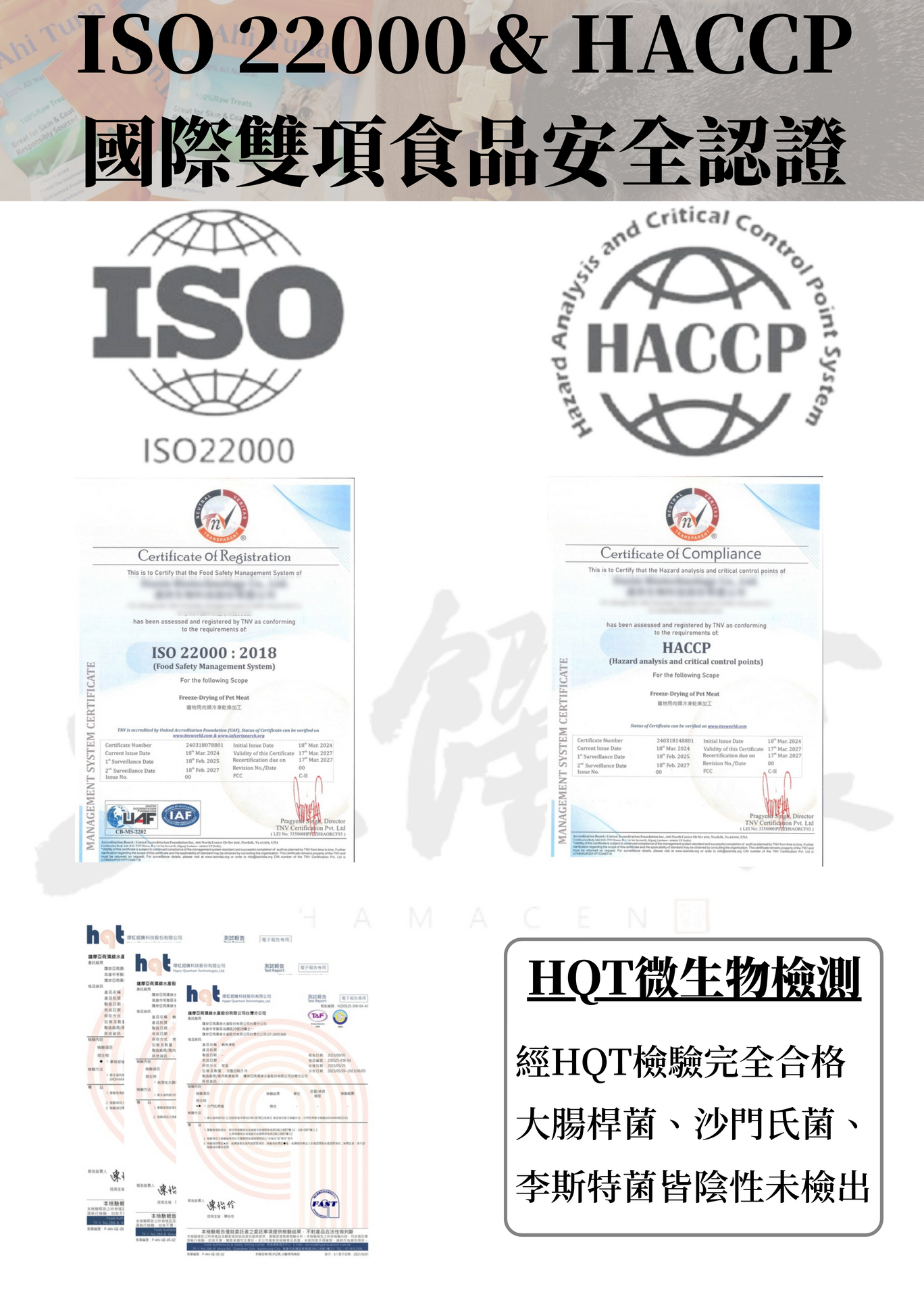 ★ 凍乾成品皆有做HQT食品檢驗,病原性大腸桿菌、沙門氏菌、李斯特菌,結果皆為陰性未檢出。