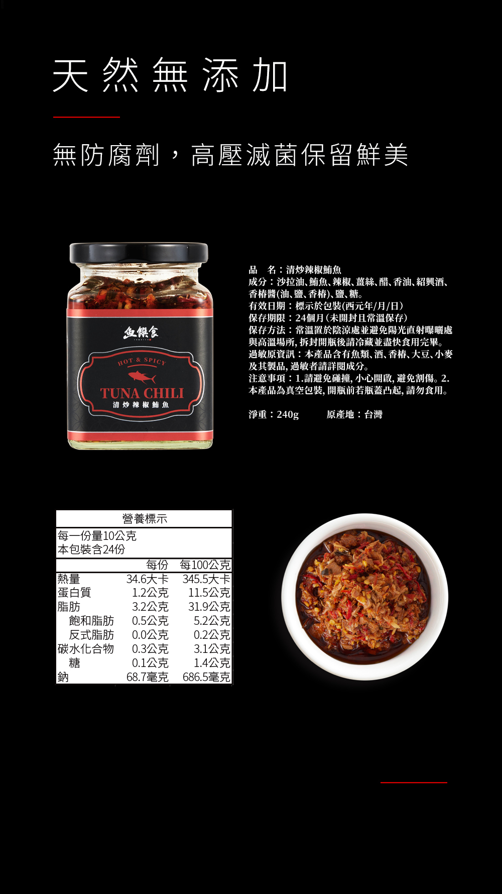 保存期限:花雕油封鮪魚 24個月、清炒鮪魚辣椒 24個月