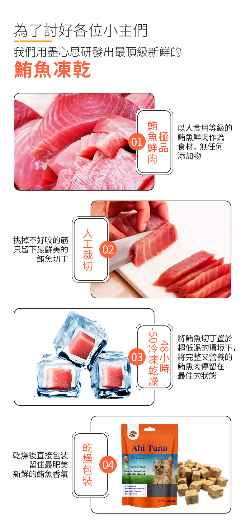 ● 純天然鮪魚鮮肉以冷凍乾燥科技製成