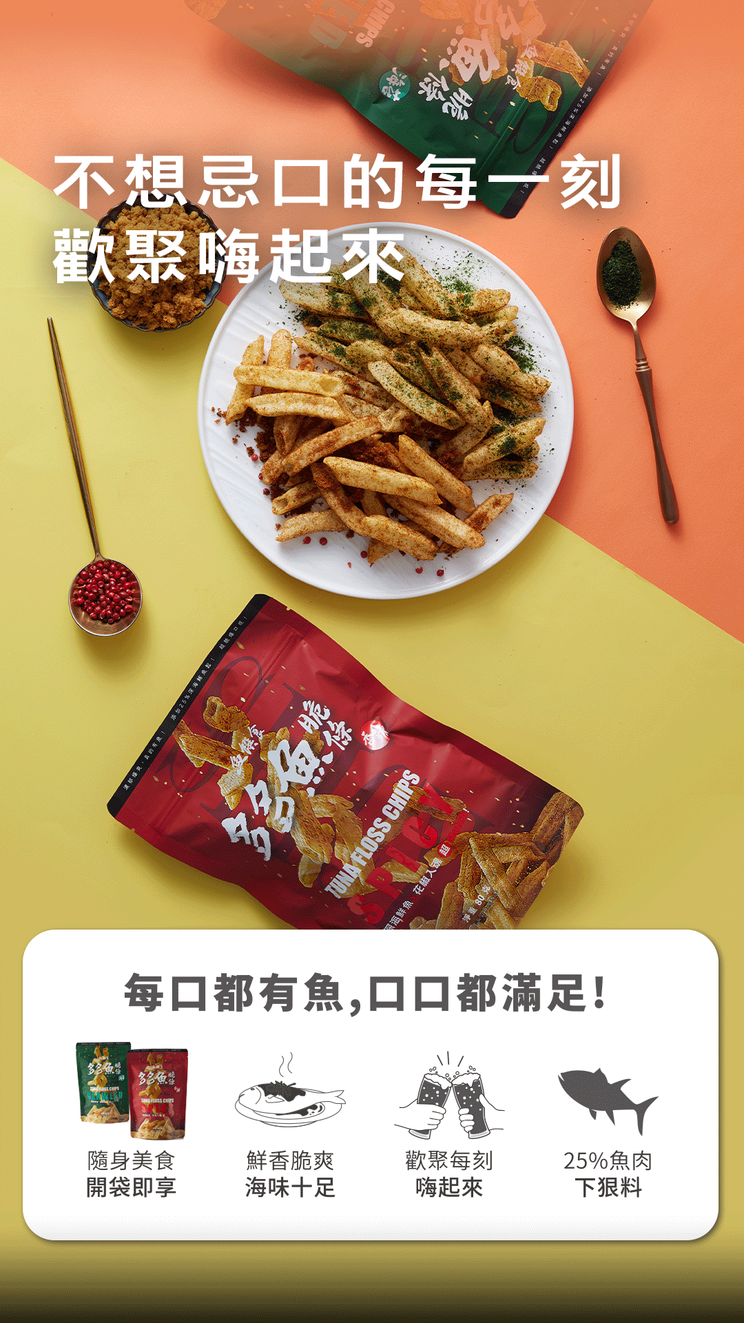 內含:多多魚爆鬆球x1 + 多多魚脆條(海苔/香辣 口味任選)x1