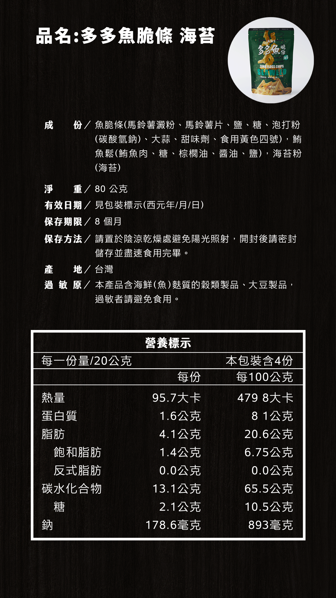 保存期限:多多魚爆鬆球 12個月、多多魚脆條 8個月