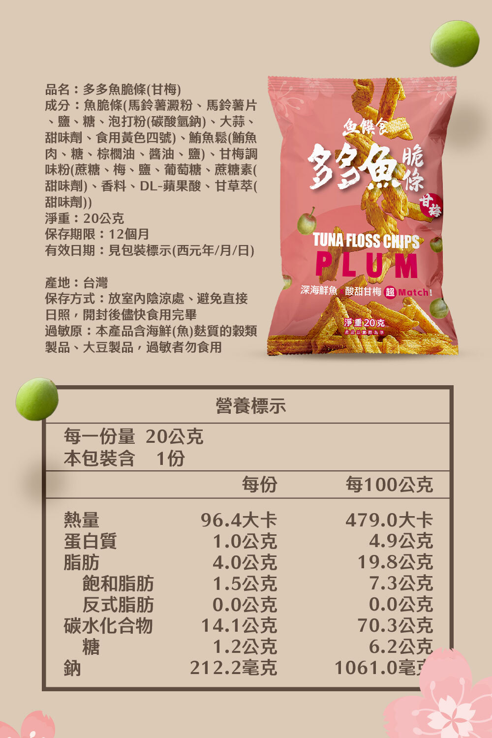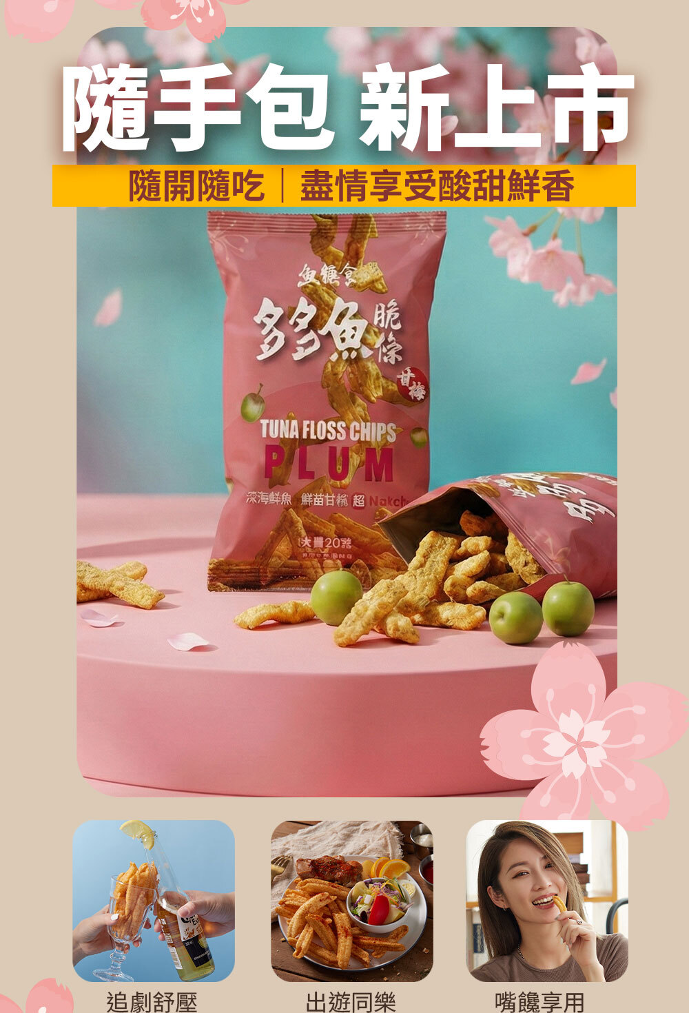 新口味【甘梅多多魚脆條】上市啦!輕巧小包裝,讓你嘴饞無壓力!