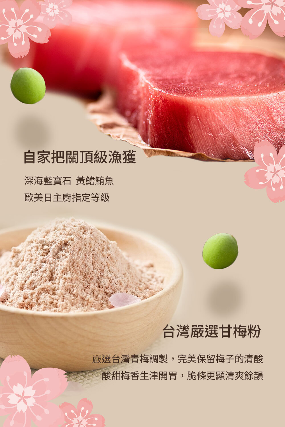 嚴選甘梅粉X極品鮪魚鬆,甜爽微酸,加上超酥脆口感,一吃就停不下來!